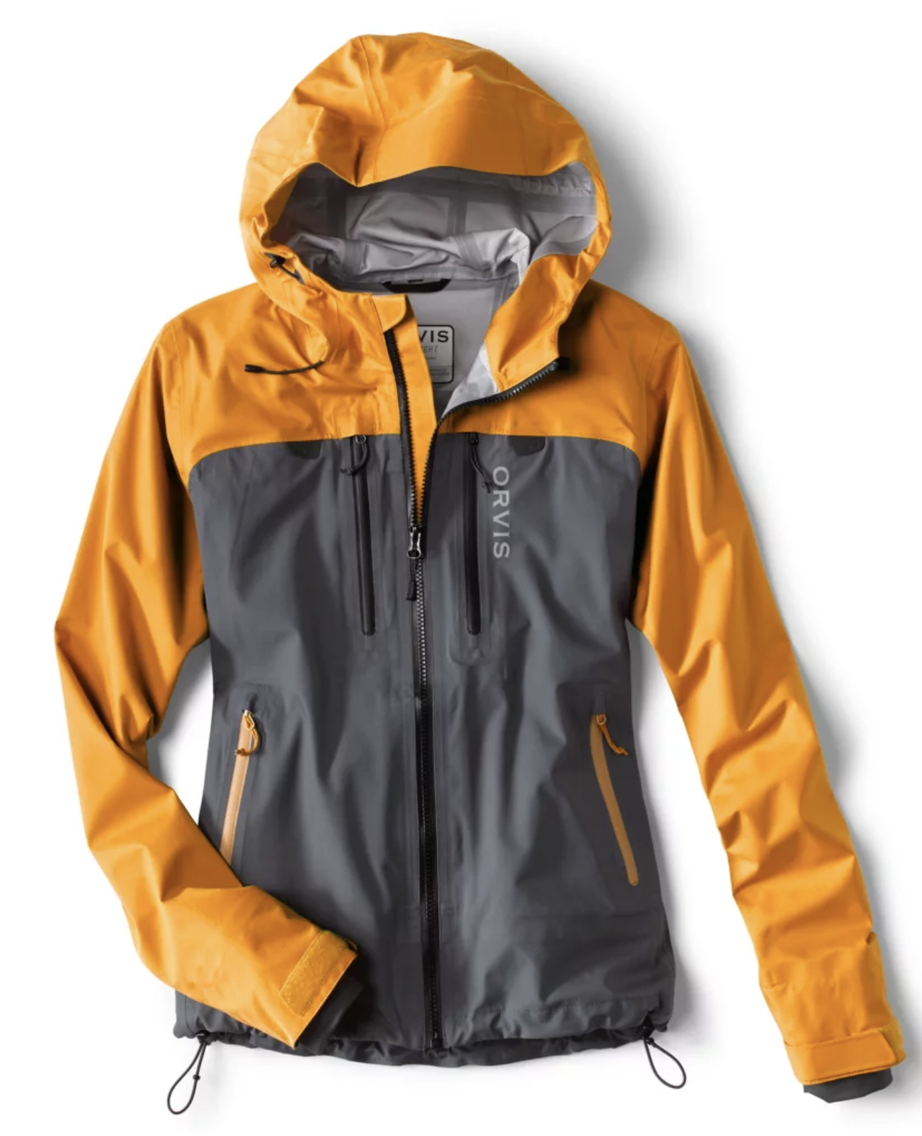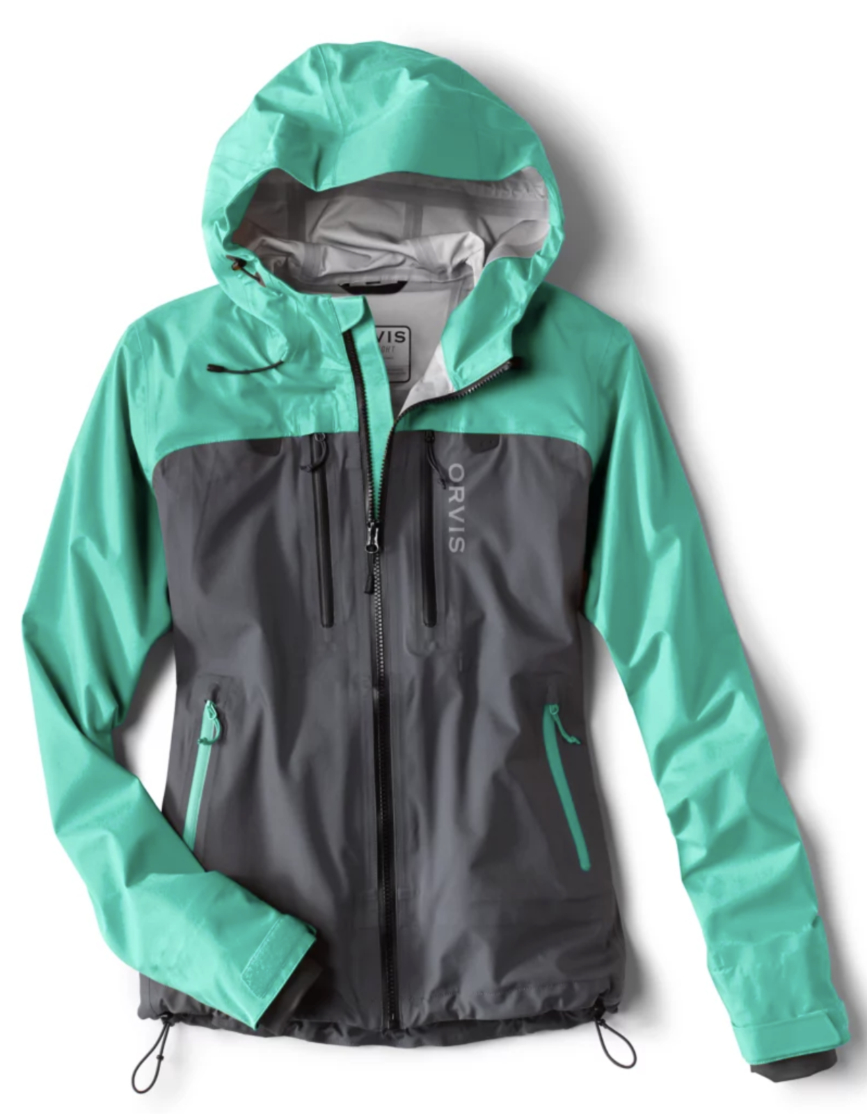 Designed specifically to fit women anglers, the Women's Ultralight Wading Jacket offers solid protection against wind and rain that can be carried in a small daypack or even the Guide Sling Pack. Most wading jackets are heavy and bulky, but this new approach to foul weather protection offers more comfort, freedom, and a significant reduction in bulk. Combined with other components of the Orvis Ultralight Wading System, this is an extremely comfortable and streamlined approach to wading and weather. It doesn't have to be heavy to offer great waterproof and windproof protection. Two-way stretch, three-layer shell fabric with 20K Waterproofness / 30K Breathability rating offers the durability you need with the comfort and freedom you desire. Moves with you while keeping you dry and comfortable over a wide range of temperature and activity ranges. Fully taped seams for added weatherproofing enhance the longevity of the jacket. DWR finish (Durable Water Repellent) repels water from fabric surface. YKK AquaGuard® water-resistant zippers are flexible, easy to slide, yet keep the elements out. Two front storage pockets and side zip pockets feature power mesh pockets for breathability, less bulk, and more pocket room when you need it. Integrated Dolphin Skin Cuff system prevents water from running up the arm when reaching into the water to release fish. Rubberized tabs for tool docking eliminate punctures in fabric when hanging tools, and offer greater security for tools. Internal power mesh pocket for added storage. Three-way adjustable storm hood with laminated brim. Rear yoke D-ring for net.