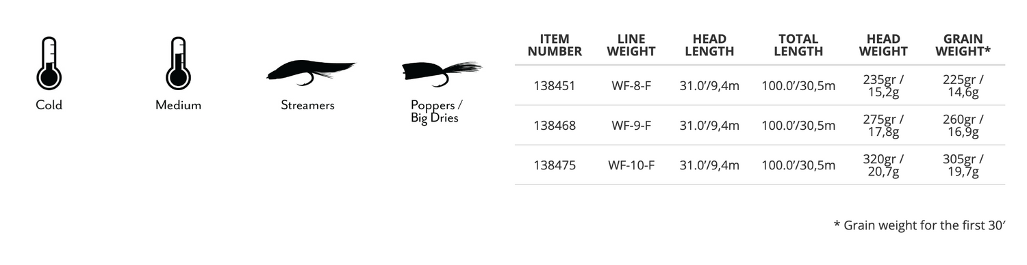 - Short front taper and head for quick, powerful casts