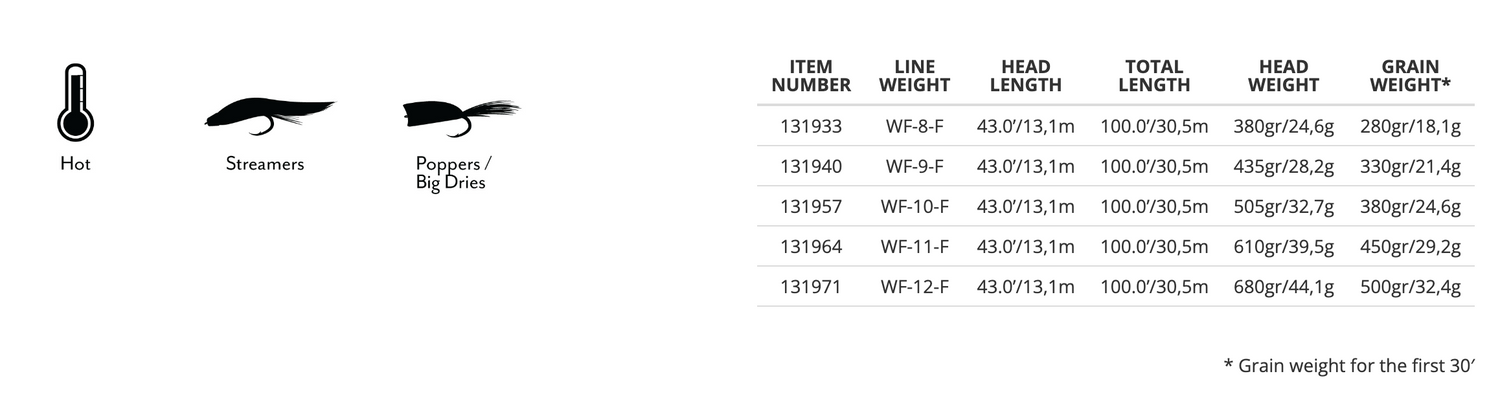 - Powerful head loads quickly and delivers large flies to distant targets; ideal for tarpon, permit, snook, and redfish; useful for GTs, bonefish, and sea trout