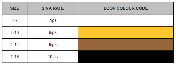 Sink rates: T7-7ips, T10-8ips, T14-9ips & T18-10ips.