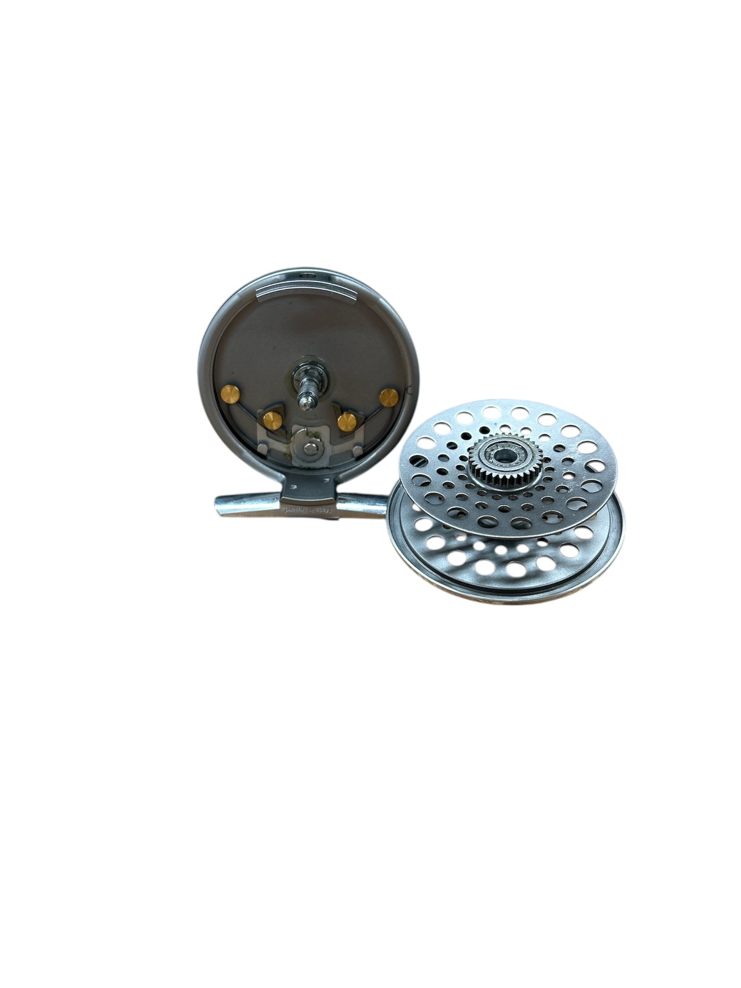 This is a previously owned reel that has never been used 2 3/4"dia. A great little reel with an adjustable drag. Perfect on a smaller rod.